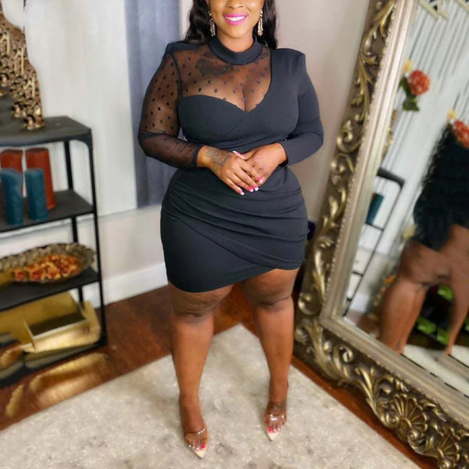 • Load image into Gallery viewer, BLACK MESH BODYCON DRESS